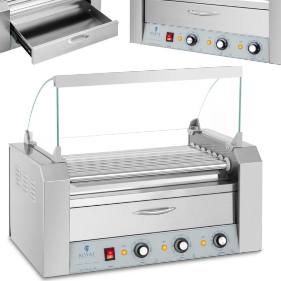 Podgrzewacz grill rolkowy do parówek hot-dogów z szufladą i osłoną - 7 rolek