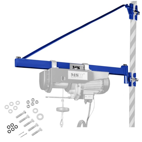 Kod producenta: 10060012 Ramię wychylne PROFRAME 1000 marki MSW stanowi optymalne uzupełnienie wciągarek linowych. Elektryczny wspornik został zaprojektowany do podnoszenia przedmiotów o wadze do 1000 kg w magazynach, garażach, warsztatach, hangarach, podczas wykonywania prac elewacyjnych oraz w wielu innych miejscach. Urządzenie pasuje do wyciągarki linowej, która potrzebuje obrotowego wysięgnika do podnoszenia różnych materiałów. Model PROFRAME 1000 ma przy swobodnym montażu zakres odchylenia wynoszący aż 180deg;. Produkt odznacza się uniwersalnym zastosowaniem oraz mobilnością. Niezwykle łatwą instalację zapewniają znajdujące się w zestawie wszystkie niezbędne akcesoria oraz instrukcja, która pomaga usprawnić i przyspieszyć pracę. Ramię wychylne od MSW można zamontować na rurze o średnicy 48 mm. Cechy produktu: