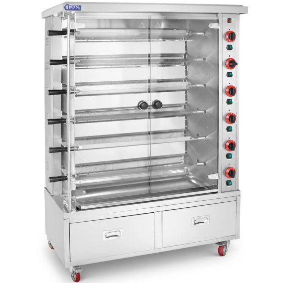Rożen gazowy opiekacz do 30 kurczaków 6 szpikulców 2 szuflady na kółkach 40 kW
