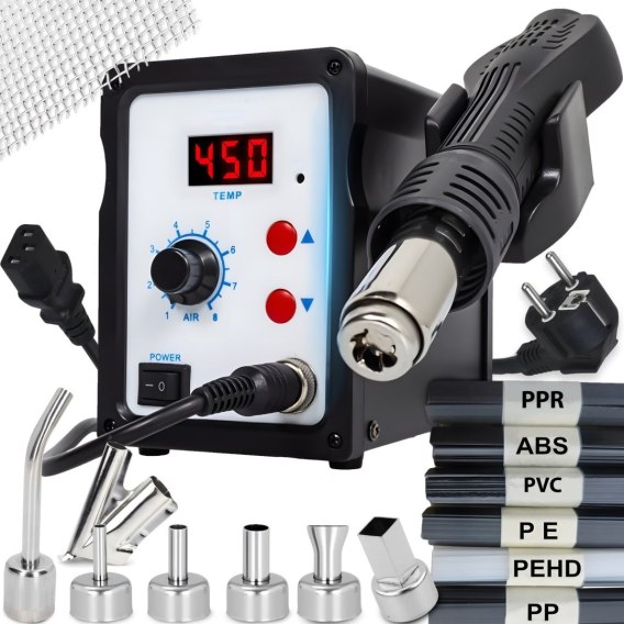 Kod producenta: 1029609 Stacja lutownicza na gorące powietrze RETOO ER1208 to wydajne i precyzyjne urządzenie o mocy 800 W, przeznaczone do lutowania elementów elektronicznych, spawania plastiku oraz wykonywania innych prac warsztatowych. Wyposażona w silnik bezszczotkowy, ceramiczny element grzejny, czujnik w podstawce kolby oraz wyświetlacz LED, zapewnia komfort i bezpieczeństwo pracy. Dzięki płynnej regulacji temperatury i przepływu powietrza, stacja umożliwia dokładne dostosowanie parametrów do rodzaju materiału. Model ten idealnie sprawdzi się w elektronice, motoryzacji i majsterkowaniu. Cechy produktu: