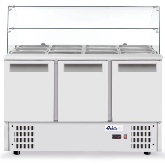 Stół chłodniczy sałatkowy 3-drzwiowy z nadstawą szklaną na 4x GN1/1 368 l - Hendi 236192