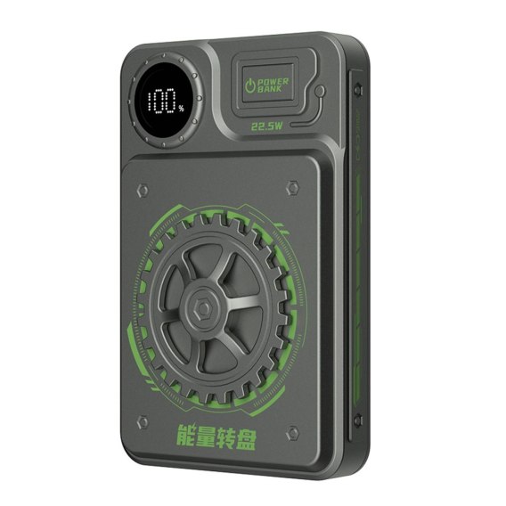 - Ma unikalny styl. Spiralny design i eleganckie, szare wykonanie z zielonymi akcentami czynią ten powerbank modnym dodatkiem do każdego zestawu.
