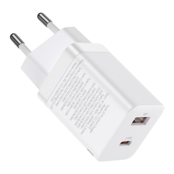 Szybka ładowarka sieciowa USB USB-C 30W PD QC Super Si Pro biały