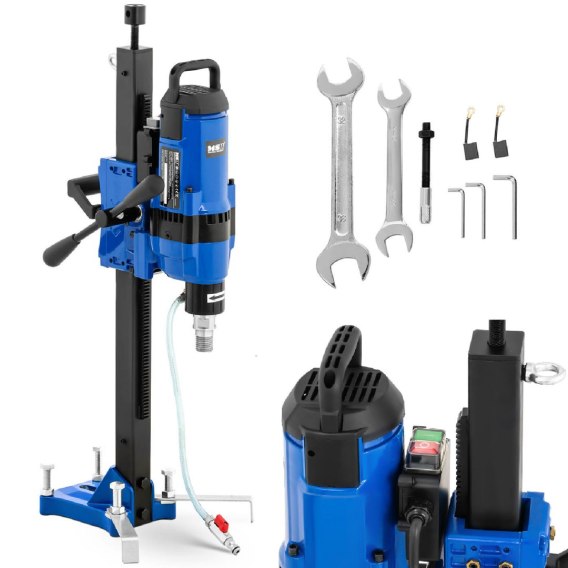 Kod producenta: 10061222 Profesjonalna wiertnica do betonu marki MSW posłuży do wycinania otworów w bardzo twardych materiałach np. zbrojonym betonie, naturalnym kamieniu, nawierzchni bitumicznej, asfalcie czy nawet w rurach kanalizacyjnych. Za doskonałą wydajność urządzenia odpowiada silnik o mocy 4000 W. Pozwala on uzyskać prędkość do 750 obr./min. Produkt uruchomisz za pomocą intuicyjnego przełącznika ON/OFF. Zamontujesz w niej wiertła otworowe o maksymalnej średnicy 260 mm. Dodatkowo maszyna ma też funkcję regulacji głębokości wiercenia. Do zmiany ustawienia służy obrotowa wajcha w kształcie litery T, która przesuwa urządzenie po pionowej prowadnicy. Nad bezpieczeństwem czuwa przełącznik różnicowoprądowy (PRCD) umieszczony na przewodzie zasilającym. Dodatkowo zastosowano ukryte szczotki węglowe oraz przyłącze do wody umożliwiające wiercenie na mokro. Cechy produktu: