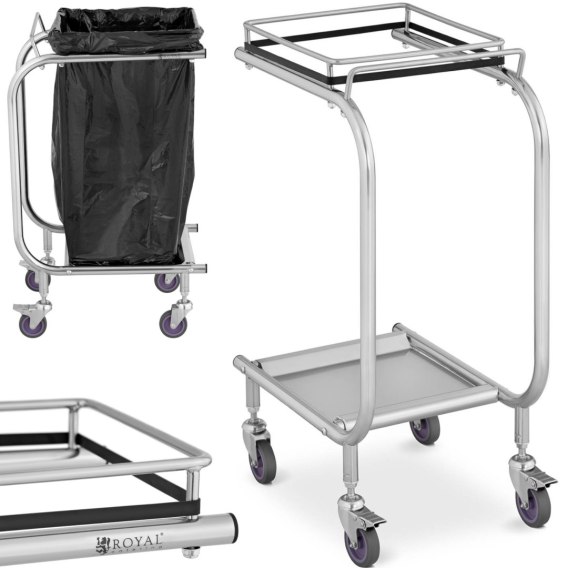 Kod producenta: 10012500 Stojak na worki do śmieci marki Royal Catering sprawdzi się w hotelach, pensjonatach czy w placówkach opiekuńczych. Wystarczy zamontować worek w ramie, dzięki czemu jest on szeroko otwarty. Stojak wykonany został ze stali nierdzewnej i tworzywa sztucznego. Cztery kółka obrotowe, w tym dwa z hamulcami pozwalają na manewrowanie nawet w wąskich korytarzach. Cechy produktu: