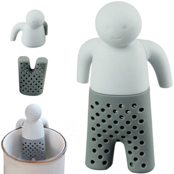 Kod producenta: 1029782 Zaparzacz do herbaty, ziół lub kawy w formie silikonowego ludzika to praktyczne i estetyczne akcesorium do codziennego użytku. Dzięki wysokiej odporności na temperaturę oraz neutralnemu materiałowi nie wpływa na smak ani zapach naparu. Zaparzacz jest łatwy w czyszczeniu, można myć go pod bieżącą wodą lub w zmywarce. Odpinany dolny pojemnik pozwala szybko napełnić zaparzacz ulubioną mieszanką herbaty lub ziół. Przeznaczony do zaparzania w kubku lub szklance. Cechy produktu: