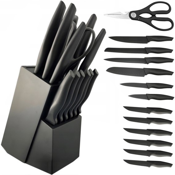 - Blok na noże - pomaga w przechowywaniu noży, ale także stanowi estetyczny element wystroju Twojej kuchni