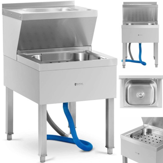 Kod producenta: 10012596 Zlew porządkowy marki Royal Catering uprości pracę w kuchni. Pozwala wstępnie wyczyścić naczynia przed użyciem zmywarki lub szybko je umyć. Kompaktowe wymiary sprawiają, że znajdzie miejsce w każdym pomieszczeniu z przyłączem wody i odpływem. W górnej części o wymiarach 33 x 23 x 12 cm znajduje się wnęka na baterię zlewozmywakową. Lokalizacja jest idealna, ponieważ również dolny zlew (37,5 x 31,5 x 17 cm) może być stamtąd zasilony wodą. Ta specjalna konstrukcja sprawia, że naczynia można wstępnie opróżnić u dołu i opłukać u góry. Górna umywalka ma pojemność 5,9 litra. Rant chroni ścianę przed zabrudzeniem. Obszerny zlew dolny ma pojemność 15 l, a odpływ o średnicy 80 mm jest idealny do ścieków. Cztery solidne nóżki gwarantują stabilność. Zlew wykonano ze stali nierdzewnej, jest wytrzymały, łatwy w czyszczeniu i odporny na korozję. Cechy produktu: