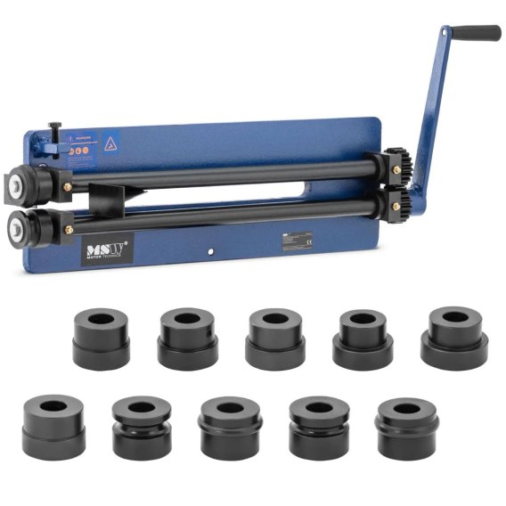 - Łatwa obsługa za pomocą korby do obsługi obu wałków i wciągania blachy,